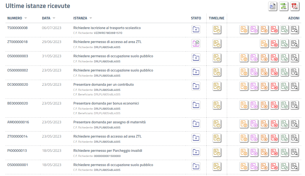 Nell'elenco delle "Ultime istanze ricevute" si trovano le istanze più recenti e non ancora concluse.